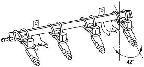 11. Наклоните форсунки на 42° и проверьте течь топлива.