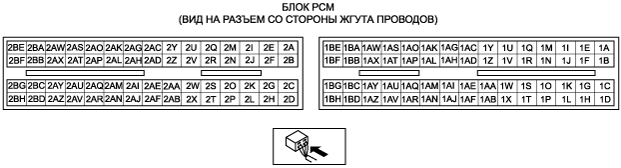 Таблица контрольных значений напряжений на контактах блока РСМ (справочные данные)